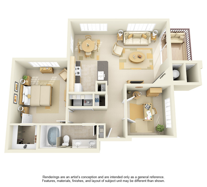 Floor plans are an artist’s rendering and may not be to scale. The landlord makes no representation or warranty as to the actual size of a unit. All square footage and dimensions are approximate, and the actual size of any unit or space may vary in dimension. The rent is not based on actual square footage in the unit and will not be adjusted if the size of the unit differs from the square footage shown. Further, actual product and specifications may vary in dimension or detail. Not all features are available in every unit. Prices and availability are subject to change. Please see a representative for details.